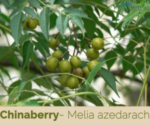 | Name in Other Languages | Afrikaans: Bessieboom, Bessieboom syringa, Maksering, Thamanga Seringboom, Ghora neem Albanian: Melie, Chinaberry Amharic: Chayininya (ቻይንኛ) Arabic : Azadirikhat (أزادرخت), ‘azidarakhat shayie (أزدرخت شائع), tshinabri (تشينابري) Armenian: Chinaberry Assamese: Ghora nim (ঘোঁৰা নিম), Khammaga Azerbaijani: Cinaberry Bangladesh: Goda neem Bengali: Bakarjam, Ghoranima (ঘোড়ানিম), Mahanim, Gora-Nim Brazil: Arvore-santa, cinamomo, jasmim-de-cachorro, jasmim-de-soldado, lilás-da-India, para-raios Bulgarian: khimalaĭska meliya (хималайска мелия) Burmese: Tarotepyi (တရုတ်ပြည်) Cambodia: Dâk’ hiën, sdau khmaôch Catalan: Arbre de sabonetes, Arbre sant, Lilà de les Índies, Llessamí d’amèrica, Metzina, Mèlia, Rosarier, amèlia, arbre de grau de Rosari, arbre de sabonetes, arbre del Paradis, arbre sant, gessamí d’Amèrica, lilà de Pérsia, parenostre, xuclamoro Chamorro: Paráisu, paraiso Chichewa: Ndya Chinese: Chuan lian, Lian (楝), Lian chu (楝树), Chuan liang zi, Ku lian pi, liàn shǔ (楝属), Zhōngguó méi (中国莓), Sen shu, Jin ling zi Croatian : Melija, Očenašica, kok, Perzijska očenašica, chinaberry, Czech: Zederach hladký, chinaberry Danish: Paternostertræ, Chinaberry Dutch: Kralenboom, Indische sering, galbessen, paternosterboom, chinaberry, English: Barbados lilac, Bastard cedar, Bead tree, Cape lilac, Chinaberry, Chinaberry tree, Ceylon cedar, Ceylon mahogany, Hoop tree, Indian bead tree, Indian lilac, Persian lilac, Pride of China, Pride of India, Sichuan pagoda tree, Syringa berry tree, Texas umbrella tree, Tulip cedar, Umbrella cedar, Umbrella tree, White cedar , Persian-lilac, Sichuan pagoda-tree, Sichuan pagoda-tree, Lelah, Paraiso, Umbrella-cedar, Syringa, seringa Esperanto: Bida melio, chinaberry Estonian: Chinaberry Fijian: Bakain, dake Filipino: Tsinaberry, Paraiso, Bagaluñga, Balagañgo Finnish: Meelia, chinaberry French: Acacie d’Égypte, Adrézarach, Arbre à chapelets, Arbe margousier, Azédarac, Azédarach, Cascarelle, Cormier des indes, Lilas de Perse, Lilas des Indes, Margousier, Mélie Pater-noster, Arbre à chapelets, lilas de Chine, faux sycamore, laurier grec, lilas des Antilles, patenôtre, pater noster, chinaberry Galician: Árbore de Santo Outelo Georgian: Chinaberry (CHīnəˌberē) German: Chinesische Holunder, Chinesischer Holunder, Indianischer Lilak, Indischer Zederachbaum, Indischer Zedrachbaum, Paternosterbaum, Persischer Flieder, Zedrachbaum, Paradiesbaum, Perlenbaum Greek: Agriopaschaliá (Αγριοπασχαλιά), Louloudiá (Λουλουδιά), Mélia, Meliá (Μέλια, Μελιά), Moschokarfia (Μοσχοκαρφια), Paschaliá (Πασχαλιά), Pseudomelia (Ψευδομέλια), Ψευδομελιά Pseudomelia (Ψευδομελιά), Solomós (Σολομός), Mavrommata, Pseudopaschalia, kinéziko (κινέζικο) Gujarati: Cinābērī (ચિનાબેરી), Bakan Limado, Bakai Nimbu Haitian: Lilas peyi Hausa: Chinaberry Hawaiian: Ilinia, ‘inia Hebrew : אזדרכת מצויה, Eazdarehet metzuya, אזדרכת מצויה Hindi: Bakain (बकैन), Bakānā nīmba (बकाना नीम्ब), bakayan (बकायन)Bakayan, Mahanimb (महानीम), Bakarja, arebevu, bakam-limdo, bakarja, bakarjan, bakayan, bakon-limdi, betain, bokain, chik-bevu, deikna, dek, deknoi, drek, ghora nim, gowdnim, heb-bevu, hutchubevu, kadbevu, kaliyapa, karin vembu, kattu veppu, mahaneem, makanim, malla nim, mallay vembu, padrai, pejri, puvempu, sima veppu, taraka-vepa, thamaga, thurakavepa, turka, vaymbu, vilayati nim, yerri-vepa Hungarian: Chinaberry Icelandic: Kínberja Indonesian: Mindi, gringging, marambung, mindi kecil Irish: Chinaberry Italian: Albero da rosari, Albero dei rosari, Albero dei paternostri, Lillà delle Indie, Perlaro, albero della pazienza, perlaro, sicomoro falso, chinaberry Japanese: Sendan (センダン), Sendan (せんだん), Chainaberi (チャイナベリ) Javanese: Chinaberry, Gringging Karbi: Neem tita Kannada: Kadu Bevu (ಕಾಡು ಬೇವು), Kiṟubēvu/kirubēvu (ಕಿಱುಬೇವು/ಕಿರುಬೇವು), Caināberi (ಚೈನಾಬೆರಿ), Kadu Bevu, Heb bevu Kazakh: Chinaberiya (чинаберия) Khmer: Dâk’hiën, Sadau khmaôch Korean: Meol gu seul na mu (멀구슬나무), chaina beli (차이나 베리) Kurdish: Chinaberry Kwara‘ae: Buriakalo Laotian: H’ienx, Kadau s’a:ngz, chinaberry (CHīnəˌberē) Latin: Chinaberry Latvian: Kīniešu Lithuanian: Chinaberry Macedonian: Cinaberi (чинабери) Malagasy: Chinaberry Malay: Gringging, Marambung, Mindi, Mindi kecil, chinaberry Malayalam: Malaveppu, śīmavēpp (ശീമവേപ്പ്), cainabeṟi (ചൈനബെറി), Aryaveppu, Malaveppu, Valiyaveppu, Kattuveppu Maltese: Siġra tat-tosku, Chinaberry Mangarevan: Paina Manipuri: Seizrak Maori (Cook Islands): Tīra Marathi: Bakan nimb (बकाणनिंब), chinaberee (चिनबेरी), Bakenu, Khaibasi Mishing: Abori esing Mizo: Sakhi-thei Mongolian: Cinaʙerri (чинаберри) Nan: Khó͘-lēng Nauruan: Gadong, gadung Nepali: Bakenu, Bakā’inō (बकाइनो), Bakenu (बकेनु), Bakaaino (बकाइनो), Mahaaneem (महानीम), chinaberee (चिनबेरी) Netherlands: Galbessen, paternosterboom Newari: Khaibasi (खाईबसी) Niuean: Sili, tili Norwegian: Paternostertre, Chinaberry Occitan: Azedrà Oriya: ଚିନାବେରୀ | Pakistan: Bakain, white cedar Pashto: چینابری Persian: زنزلخت Zanzalakht, آزاددرخت Philippines: Bagaluñga, balagañgo, paraiso Pnb: دریک Pohnpeian: Lelah Polish: Miotla, Chinaberry Portuguese: Amargoseira, Amargoseira-do-Himalaio, Árvore-santa, Cinamomo (Brazil), Conteira, Lilás-da-Índia, Lilás-das-Índias, Margoseira-do-Himalaio, Mélia, Paraíso, Sabonete-de-soldado, Chá-de-soldado, Jasm