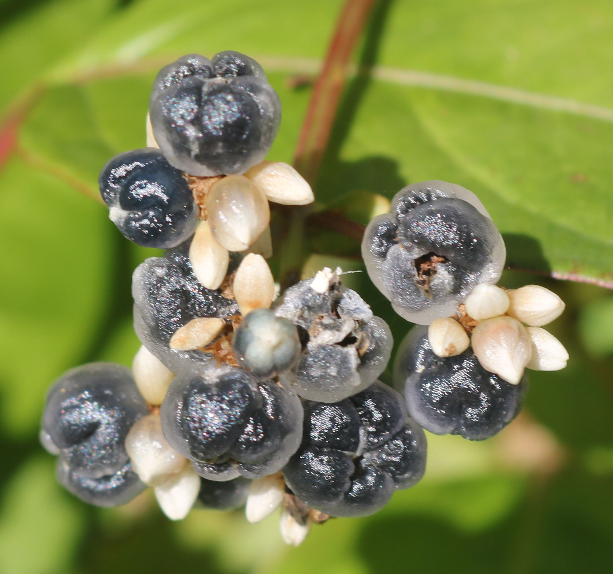 Fruit Shape & Size Achene trigonous, 2.8–4 mm long, 2–3 mm diam., black, enclosed by enlarged succulent