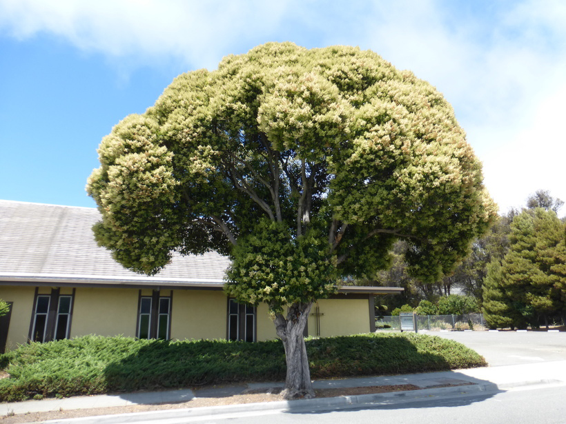 Ligustrum lucidum commonly known as Chinese privet tree or glossy privet and Nu Zhen Zi in Pinyin is a species of flowering plant in the olive family Oleaceae. Sometimes it is a bit annoying when ligustrum lucidum berries are ripe. The plant is native to southern China, it has been naturalized in Spain, Italy, Algeria, Canary Islands, New Zealand, Lesotho, South Africa, Japan, Korea, Australia, Norfolk Island, Chiapas, Central America, Argentina, Uruguay, and the southern United States (California, Arizona, Maryland, and the southeast from Texas to North Carolina). The name Chinese privet is also used for Ligustrum sinense. Some of the well-known common names of the plant are broad leaf privet, broad-leaved privet, Chinese glossy privet, Chinese liguster, Chinese privet, Chinese wax leaved privet, Chinese wax-leaf privet, Chinese white-wax tree, glossy privet, large leaf privet, large-leaved privet, ligustrum, Nepal privet, privet, tree privet, giant privet, wax tree privet, privet fruit, Chinese Ligustrum, Dong Qing Zi and white wax tree.