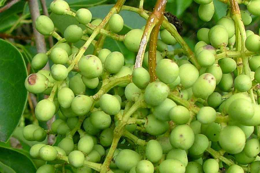 Fruit Shape & Size Oval or round drupes that is 5-10 mm long and 4-6 mm wide
