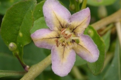 | Flower | Solitary or in few-flowered racemes, erect; calyx campanulate, 5-toothed, 3 mm long; corolla funnel-shaped, 5-lobed, 10-15 mm long, tube narrowly cylindrical at the base for 1.5 mm, lobes 5-8 mm long, red-purple with yellowish throat |