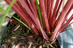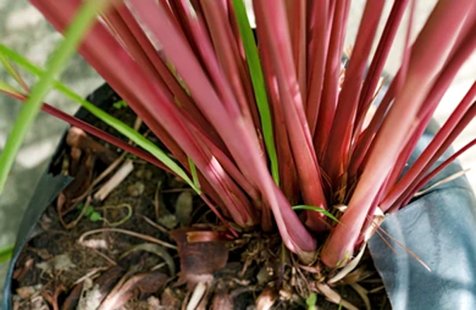 Citronella looks like, and is closely related to, lemongrass, but they are not interchangeable! Lemongrass does not have any red at the base of its stems—they are green.