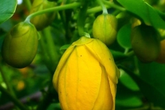 | Flower | Flower grows in the leaf axis. They have green sepals which is 6 to 9 cm long. There are 5 petals; which are yellow in color which have distinct red veins and 1-2 cm long |