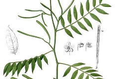 | Leaf | Lanceolate or ovate-lanceolate, bipinnately compound, and about 20 to 25 cm in length. Each pinna has four to seven pairs of leaflets, which are 3 to 9 cm in length, and 2 to 4 cm in width, and arranged oppositely |