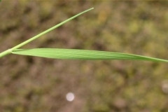 Stems (stolons) are decumbent (creeping) and slender and produce long narrow leaves. Leaf blades are smooth on the upper surface and ridged on the underside, 1 to 3 mm wide and bluish green in appearance. The ligule is long, membranous, finely toothed or entire and rounded, auricles are absent.