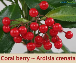 Coral berry is a small, ornamental, erect, perennial, evergreen shrub or small tree that normally grows up to 1.5m tall, growing in multi stemmed clumps with only flowering branches. The plant is found growing in closed forests, hillsides, valleys, shrubby areas, dark damp places, lowlands, near forest margins and along waterways, invades scrub, sand hill, mesic flat woods, hydric hammocks, bottomland forests, maritime ham-mocks, lake shores, ruderal communities, pastures, old fields, fencerows, railroads and roadsides. The plant grows on all soil types from acid to alkaline soils provided they are well drained. It prefers partial shade but can withstand full sun. The plant performs poorly in cold climate and is killed by hard freeze.