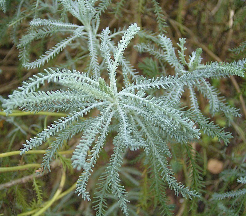 The pounded aerial parts of Cotton Lavender acts as insect repellant due to the strong odor that they emit when pounded.