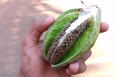 Shapes Pair of follicles, each follicle ovoid, boat-shaped, inflated, 6.5–10 cm long and 3–5 cm wide, many-seeded