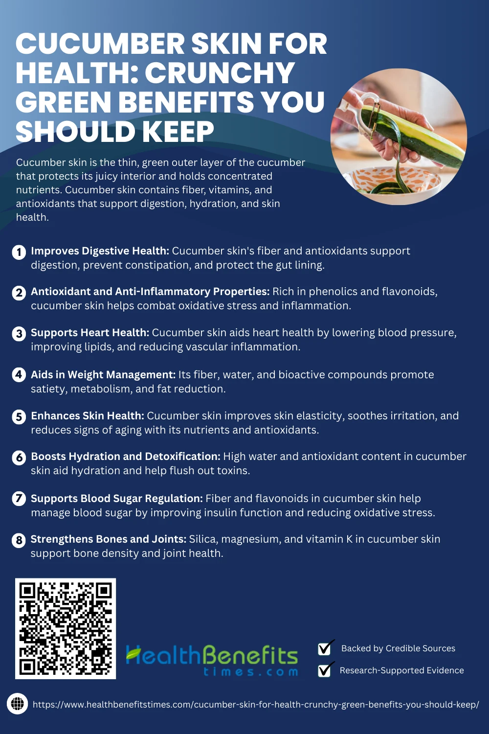 - Cucumber skin contains fiber, vitamins, and antioxidants that support digestion, hydration, and skin health.