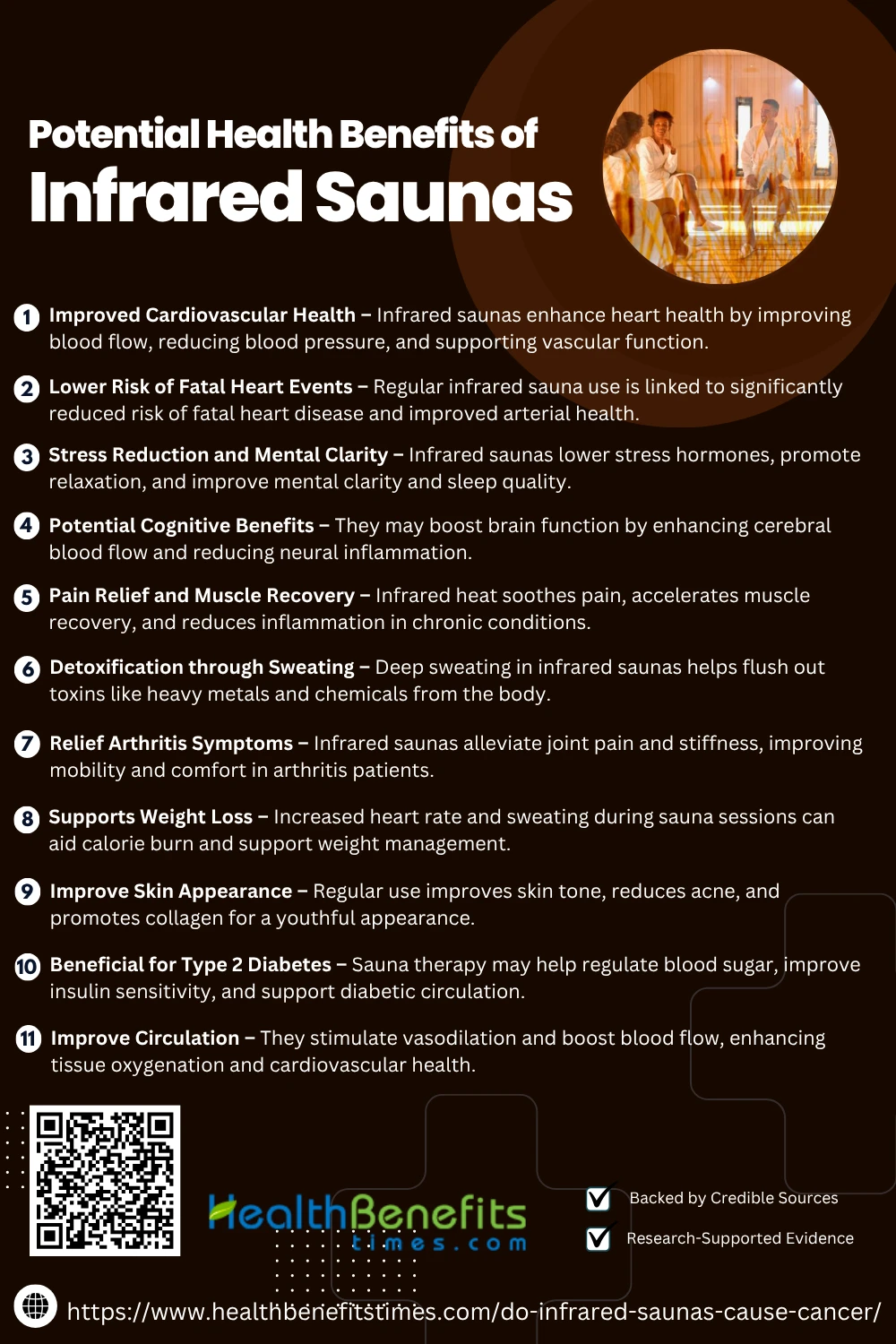 • Current research shows no evidence linking infrared sauna use to increased cancer risk.