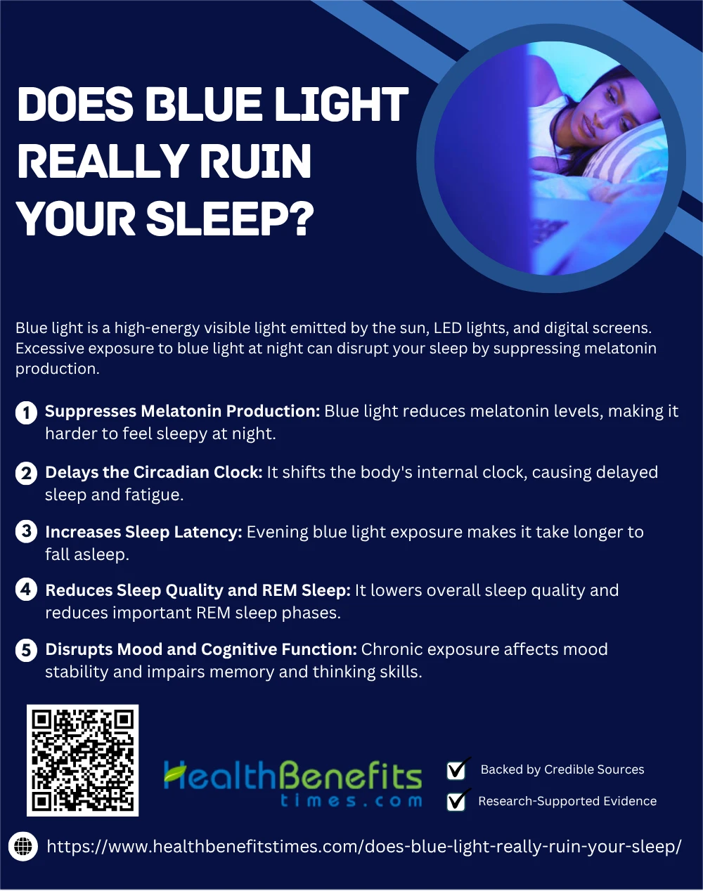 - Excessive exposure to blue light at night can disrupt your sleep by suppressing melatonin production.