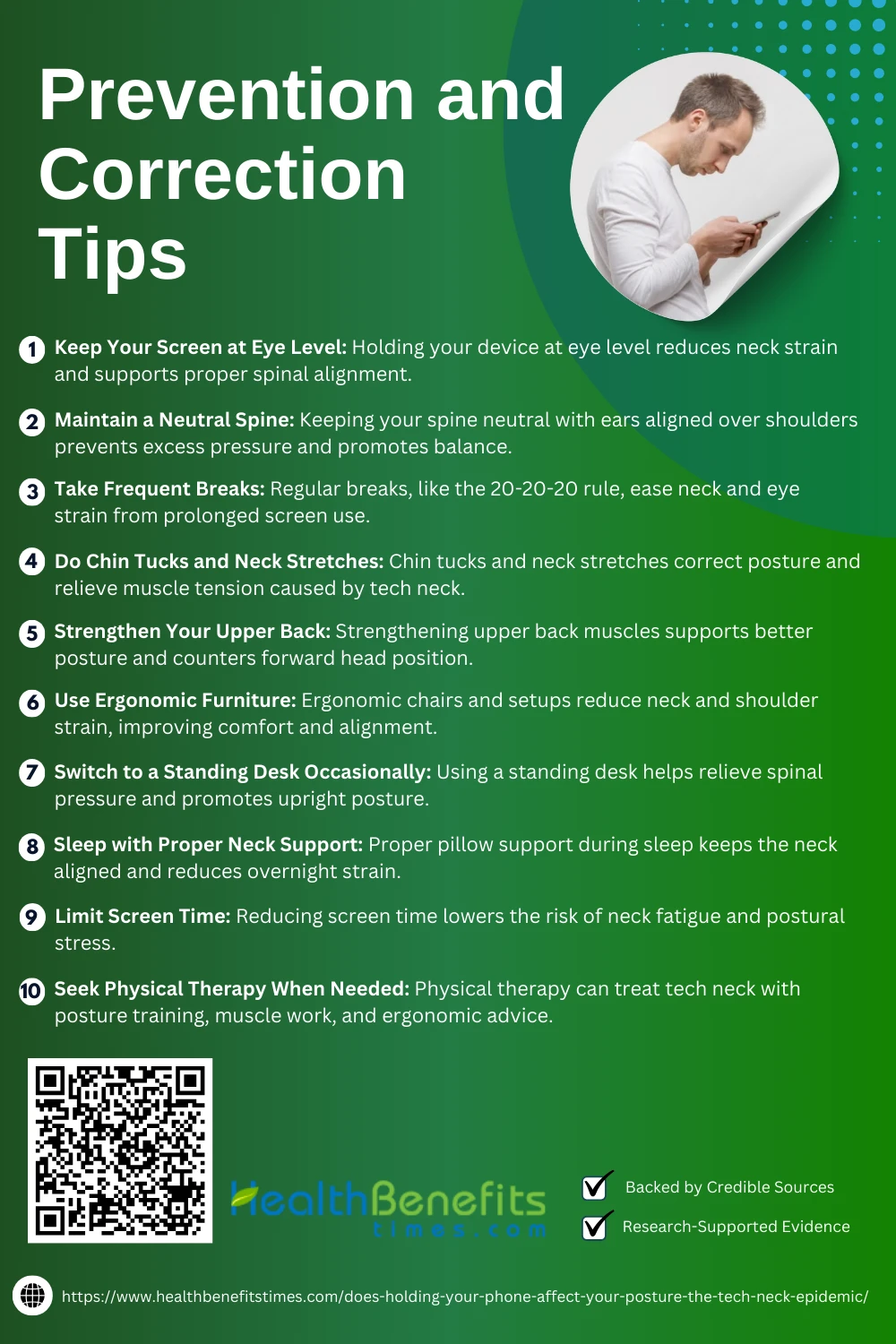 Improper phone posture significantly raises the risk of chronic pain disorders by overloading spinal structures and muscles. Sustained neck flexion increases disc and ligament pressure in the cervical spine. (19) This imbalance can trigger persistent pain in the neck, shoulders, and lower back. (14) Prolonged poor alignment disrupts nervous and vascular systems, compounding pain severity. (20) Widespread musculoskeletal discomfort is also reported across upper limbs and worsened by repetitive stress injuries like text neck. (21) (7)