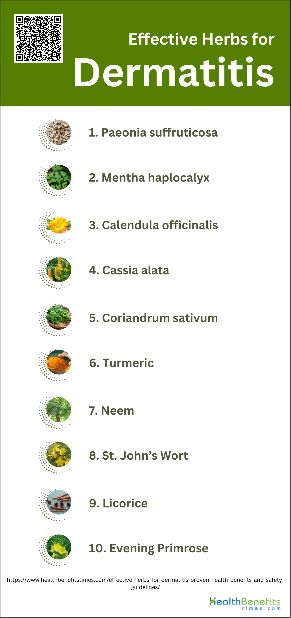 Herbs offer a compelling alternative to conventional medications for the treatment of dermatitis due to their multifaceted therapeutic properties and lower incidence of side effects. Herbal treatments, such as those derived from Cassia alata, Coriandrum sativum, Curcuma longa, and Azadirachta indica, have demonstrated significant anti-inflammatory, antimicrobial, antioxidant, and wound-healing properties, which are crucial in managing atopic dermatitis (AD). Additionally, natural herbal medicines have shown remarkable clinical efficacy in reducing symptoms like erythema, pruritus, and transepidermal water loss, making them suitable for patients of all ages, including pregnant women. The use of herbs in traditional Chinese and other Asian medicines has been well-documented, with studies indicating their effectiveness in reducing AD severity and improving patients’ quality of life. Moreover, herbal treatments are often associated with fewer adverse effects compared to synthetic drugs, making them a safer option for long-term management of chronic skin conditions. Therefore, the integration of herbal therapies into dermatitis care not only provides a natural and holistic approach but also aligns with the growing preference for treatments with minimal side effects.
