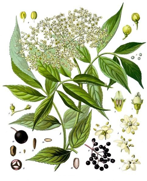 Elderberry Tea made from flowers is used against cold, high temperature and scarlatina.