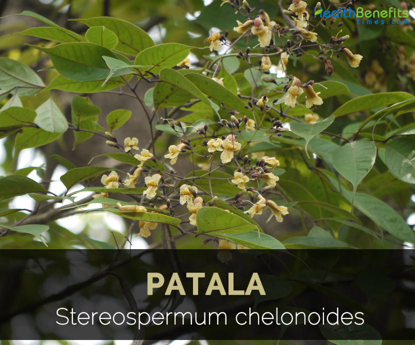 Stereospermum chelonoides known as Patala is a medicinal herb which is used for treating health ailments such as rheumatism, infections, inflammation and cancer. It is bitter, cardiotonic, astringent, diuretic, cooling and tonic. It provides relief from three dosas, difficulty in breathing, anorexia, vomiting, piles, thirst and hiccough. Fruits are used for bleeding diseases. The white variety increases appetite, purifies blood, cure oedema, hiccough, vata and morbid kapha.