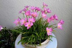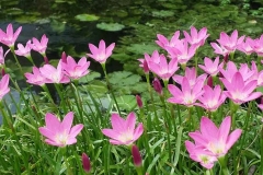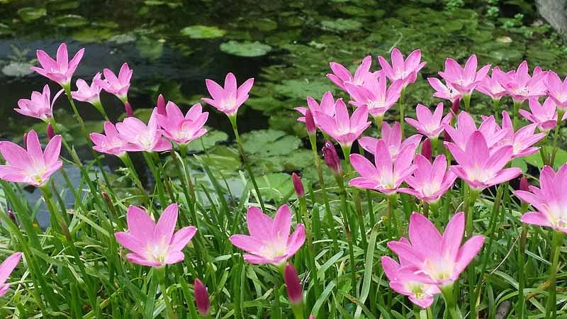 As you might gather from their common name, Fairy lily likes a bit of water and you often see a flush of bloom after a rain. The flowers appear consistently throughout the summer as long as they are kept moist. The foliage may even disappear during drought conditions. For best bloom, water regularly and deeply throughout the growing season, particularly from midsummer through fall. No fertilizer is required, though when they’re planted in heavy clay you should spread a 1- to 2-inch layer of finished compost or aged manure around the plants before they emerge in the spring.