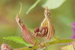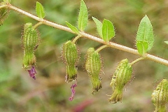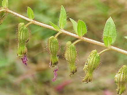 | Flower | Solitary, alternate in the axils of new leaves, trumpet-shaped, pedicels 2 to 7 mm long, ending in 2 persistent bracts. Floral tube is 5-8.5 mm, the base rounded to slightly descending, the mouth blunt, not extended ventrally, the dorsally green or purplish tube, glabrous or the veins sparsely setose, rarely also finely hirsute |