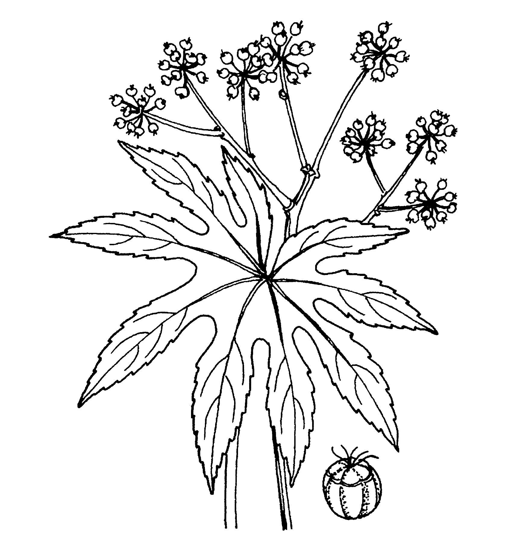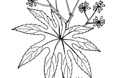 | Leaf | Large, leathery, sub-orbicular varying in size according to the size and vigor of the plant, normally 12-30 cm in diameter, palmately 7-9 deeply lobed, with a broad heart-shaped base. The lobes reach more than half-way to the base, ovate, coarsely and bluntly toothed except towards the base |