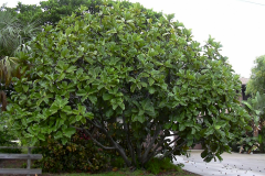 | Leaf | Grooved petiole is thick and glabrous, with a length of between 2- 5 cm (0.8-2 in). The lamina is large, simple with leathery texture and a wavy margin. They are nice dark green in color. The leaves are relatively thick and have a pronounced reticulate venation, consisting of a strong midrib and 8 to 10 second order veins. |