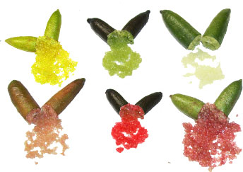 Fresh vesicles have the effect of a burst of gassy tangy flavor as they are chewed.