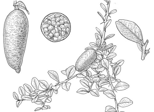 Sometimes it is also known as “citrus caviar” due to the fact that it packs a lot of juice-filled vesicles, resembling caviar. It has edible fruits which are under development as a potential new commercial crop. Popular varieties include the Alstonville variety, which is green and seedless, Judy’s Everbearing, which is a light green to pink-skinned fruit with a pale rose pulp, Pink Ice which has ruby-brown skin with rose-colored pulp, and the Purple Viola and Jali red, sharing the same ruby pulp and skin.