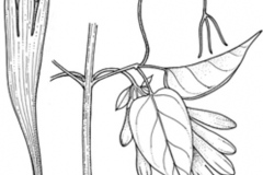 | Leaf | Compound leaves have two or three 2-3 in oval leaflets and are arranged in pairs opposite each other on the stem. Often, the center leaflet is modified into a coiled, three-parted tendril |