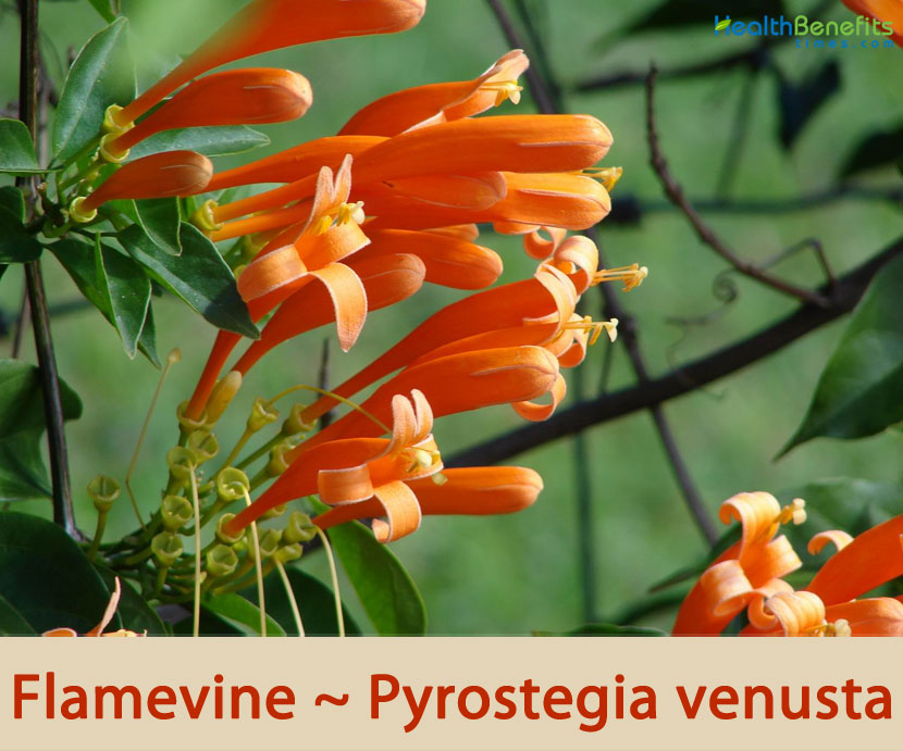 | Common Names | Flame flower, flame vine, flaming trumpet vine, orange creeper, orange trumpet vine, Flaming trumpet, Golden shower trumpet, Orange Bignonia, flame creeper, flame flower vine, golden shower, golden shower vine, golden showers, orange creeper vine, orange trumpet creeper, Chinese cracker flower, belas, Flame vine, Orange trumpet |