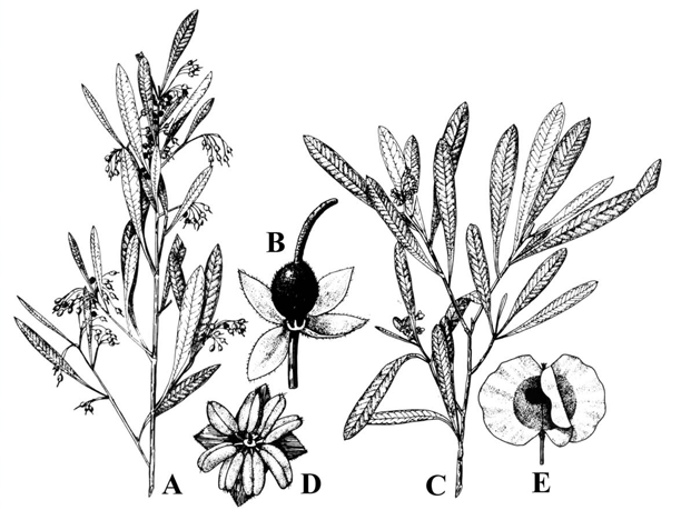 | Plant Growth Habit | Dioecious or monoecious dense or erect, multi-stemmed, spreading, evergreen shrub or single-stemmed small tree |