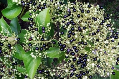 | Flower | Greenish-white or nearly white, 4 to 5 millimeters long and borne on terminal inflorescences (cymes) 8 to 20 centimeters in diameter |
