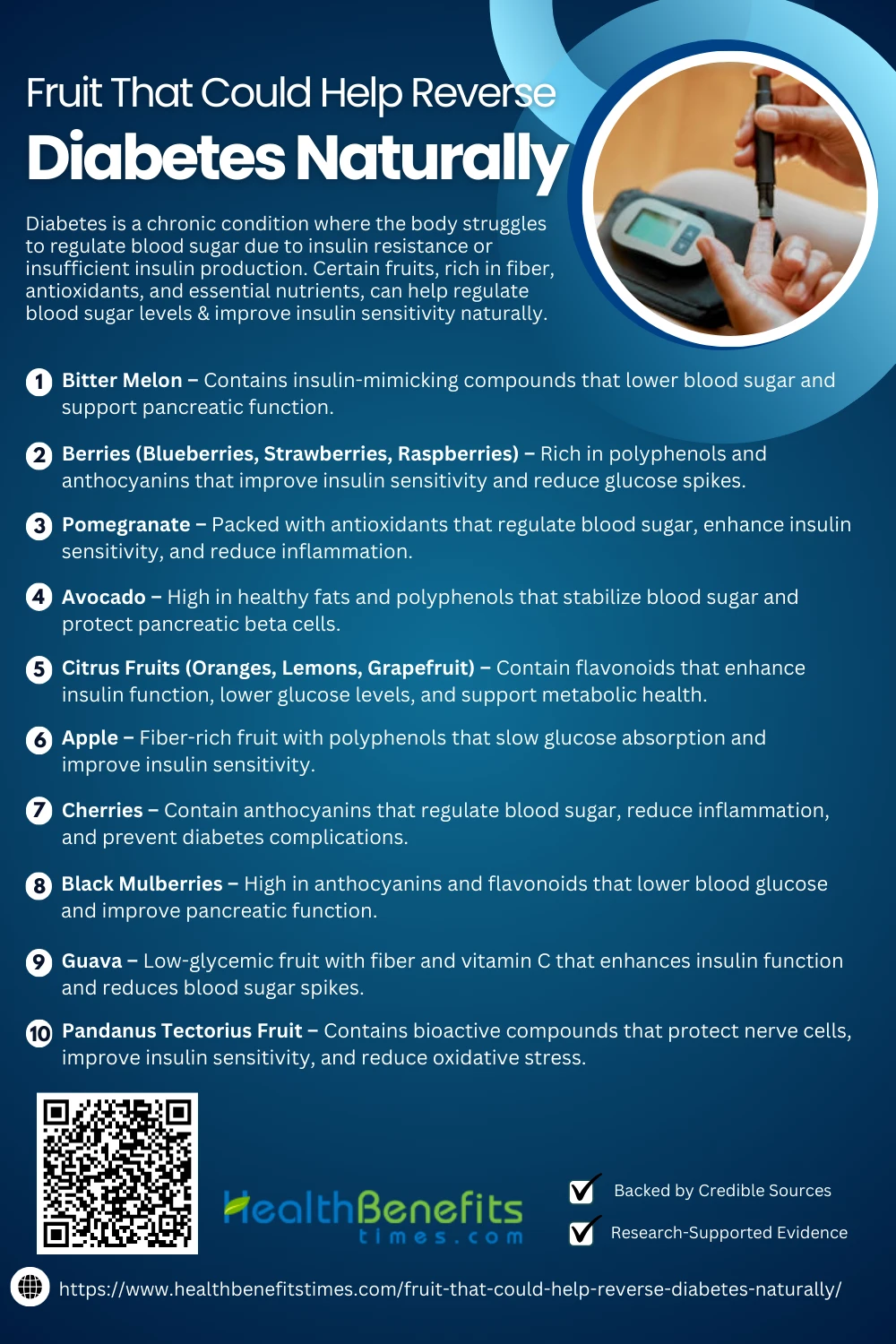Incorporating the right fruits into your diet can be a powerful step toward managing and even reversing diabetes naturally. Packed with fiber, antioxidants, and essential nutrients, these fruits help regulate blood sugar and improve insulin sensitivity. However, balance is key—pairing them with a healthy lifestyle, including exercise and mindful eating, enhances their benefits. By making informed choices and embracing a holistic approach, you can take control of your health and support long-term diabetes management naturally. Start adding these diabetes-friendly fruits to your meals today for a healthier future!