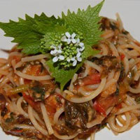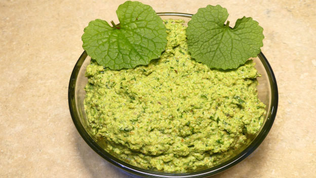 - Mix together the garlic mustard stems pasta and sauce and serve.