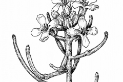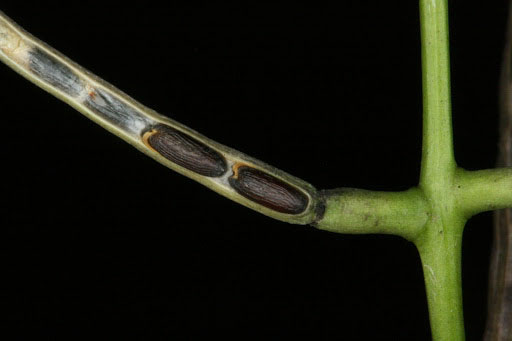 | Fruit Shape & Size | Erect, slender, four-sided capsule 4–5.5 cm (1.6–2.2 in) long, called a silique containing two rows of small shiny black seeds which are released when a silique splits open. |