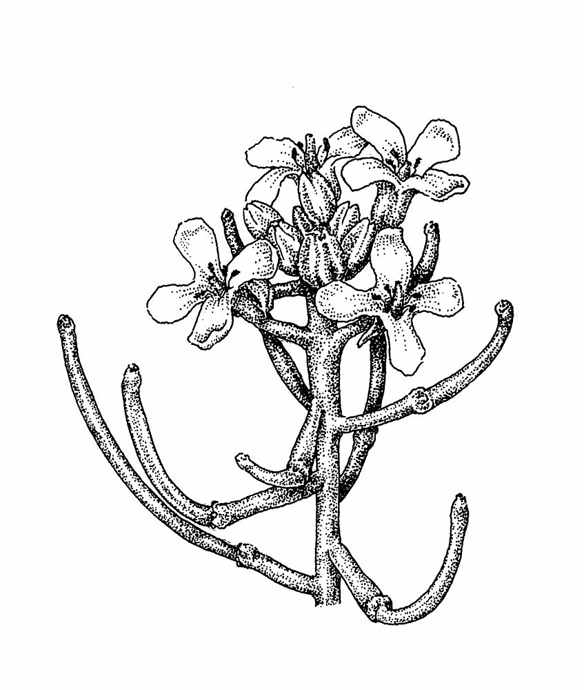 | Flower | Flowers are produced in spring and summer in small clusters. Each small flower has four white petals 4–8 mm (0.2–0.3 in) long and 2–3 mm (0.08–0.12 in) broad, arranged in a cross shape. |