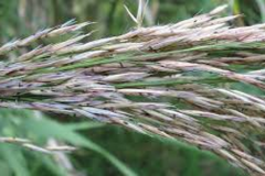 The flower spikelets break up at maturity (i.e. they disarticulate above the glumes) leaving the bracts (i.e. glumes) remaining on the seed-head. The small (1-2 mm long) oblong ‘seeds’ (i.e. grains or caryopses) are enclosed in two papery bracts (i.e. the palea and lemma).