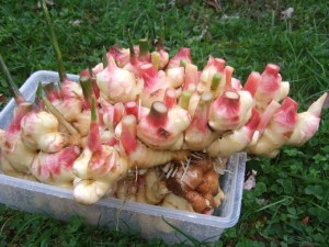 • Young, fresh ginger is consumed raw as ‘lalab’ and used for ‘sayur’ and for pickles called ‘achar’, while the old rhizomes are used as a manisan in Indonesia.