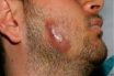 A condition instigated by a fungal infection, typically leading to the affected area, frequently in the jaw region, forming pus and discharging through multiple openings, releasing a yellow discharge containing granules. In the past, it was considered untreatable, but it now shows positive responses to high doses of penicillin.