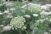 Perennial carrot-like herb with feathery leaves and small white flowers.