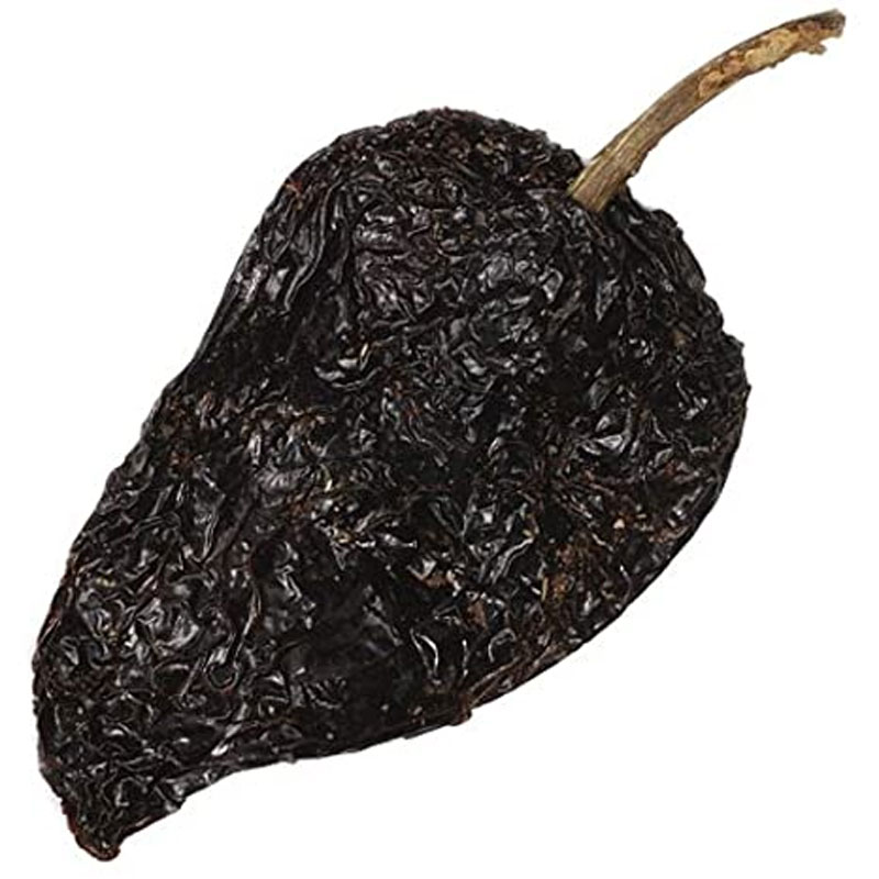 Chiles that are moderately hot made from dried poblanos with a wrinkled, dark brownish-red skin and a deep earthy flavor.