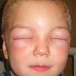 Angioedema, a type of allergic reaction, shares similarities with urticaria (hives) and is distinguished by the rapid appearance of distinct, sizable swellings on the skin, larynx (voice-box), and other regions. If left unattended, these swellings can persist for several days.