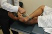 The movement of the foot caused by the contraction of the calf muscles in response to tapping the Achilles tendon located at the rear of the heel with a hammer.
