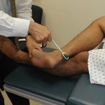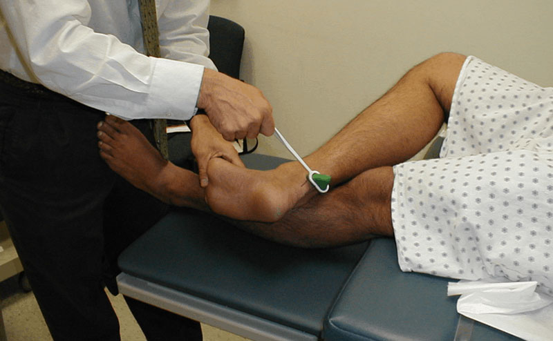 A sudden jerk as a reflex action of the foot when the back of the ankle is tapped.