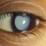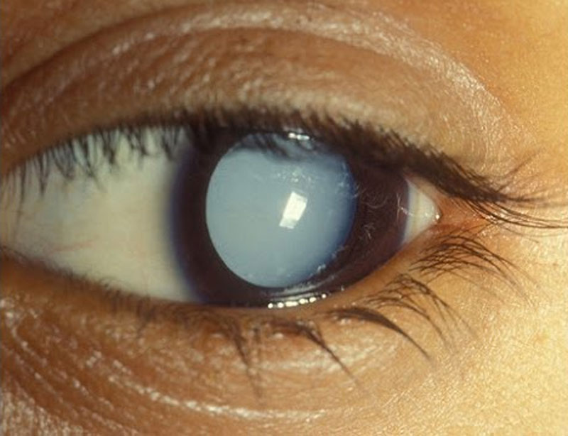 Absence of the natural lens of the eye. In the normal eye, the lens is a clear, crystalline structure located behind the iris (the colored part of the eye) that focuses light coming into the eye. The cause of aphakia can be a congenital abnormality (lacking lenses at birth), an injury that destroys the lens, or surgical removal. Surgical removal of the lens is standard treatment for cataract, a disease in which the lens becomes cloudy or opaque. Aphakia causes extreme farsightedness, which can be treated with glasses or contact lenses or by surgery to insert a plastic lens implant in the eye.