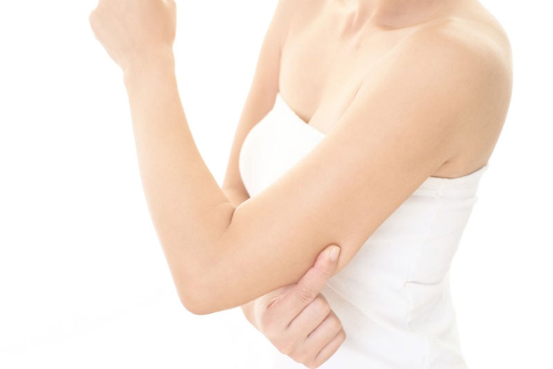 The part of the body from the shoulder to the hand, formed of the upper arm, the elbow and the forearm.
