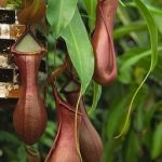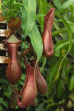 Pitcher-shaped or bottleshaped, such as a hollow tubular leaf.