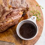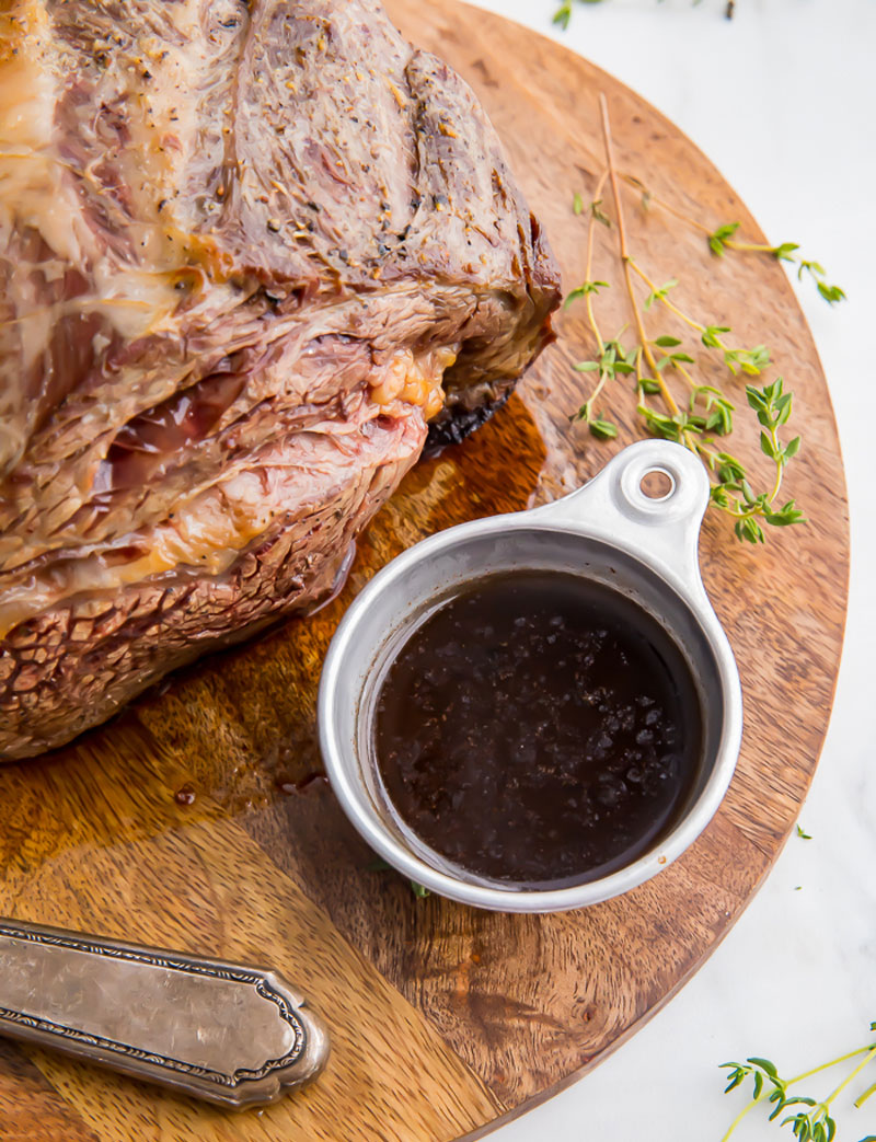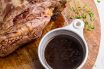 Juice obtained from roasting and served with the product.