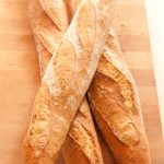 The Greek word bakterion, meaning rod or stick, is the source of both baguette, a stick-shaped loaf of French bread, and of bacteria, the stick-shaped microorganisms that surround us everywhere. The Greek bakterion gave rise to the Latin baculum, which evolved into the Italian bacchio, still with the sense of stick. The diminutive of bacchio—bacchetta, meaning little stick—was then borrowed by the French as baguette, a name they proceeded to bestow upon the bread. In English, references to this French loaf do not appear until 1958, although before this, dating back to the early eighteenth century, baguette had been used in English as an architectural term referring to a kind of decorated moulding.