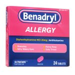 An antihistamine medication used in general medical practice to treat cold or allergy symptoms and used in psychiatry as an antianxiety medication or to treat sleep disturbance. The brand name for diphenhydramine.