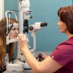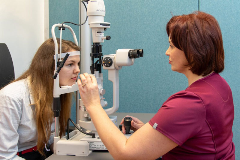 An instrument used for observing die tissues of the eye, consisting of a bright slit source and a binocular microscope.