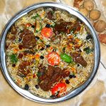 This dish, which is also spelled briani, is reminiscent of a combination between a pilau and a curry. It is composed of rice and a medley of meats, poultry, eggs, or vegetables that are commonly found in curry dishes.