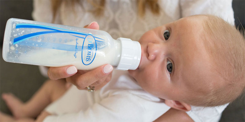 The act of giving a baby milk from a bottle, as opposed to breast feeding.